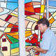 Our studios association with the Frank Lloyd Wright Foundation® has allowed us the privilege of working on several Wright buildings in the restoration of art glass at Taliesin, The Unity Temple, Coonley Playhouse and most recent the Darwin D. Martin House in Buffalo, NY. Our licensed Frank Lloyd Wright® reproduction art glass windows have also been installed in several different public buildings throughout the United States.