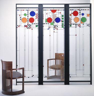 In 1988, Oakbrook Esser Studios was commissioned by the owners of the Coonley Playhouse to reproduce all of the home's art glass which had been previously sold at auction. Working together with the Frank Lloyd Wright Foundation and The National Center for the Study of Frank Lloyd Wright. Our craftsmen were able to create exact replicas of each of the thirty-nine art glass windows using original the documentation from the early 1900's.