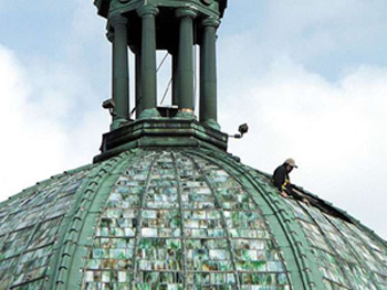 This latest dome restoration project began approximately five years ago after it was discovered there were missing panes in the dome and pigeons were making the historic emerald beacon into a bird condominium.